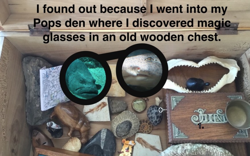 Descobri o que aconteceu porque entrei no escritório do meu pai onde encontrei uns óculos mágicos num baú de madeira velho.