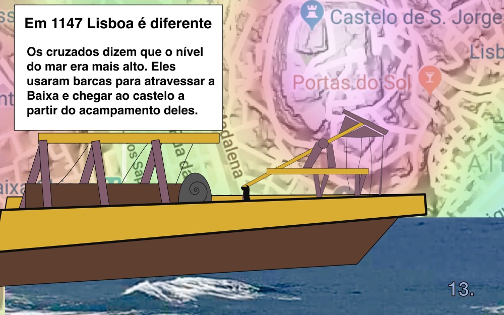 Os cruzados disseram que o Castelo, em 1147, estava mais perto do mar e que precisavam de um barco para chegar ao acampamento.