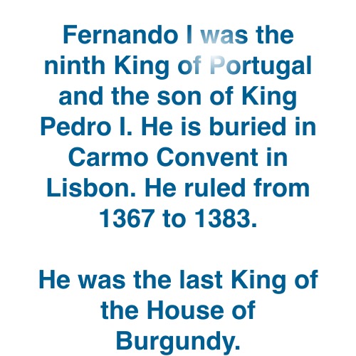 King Fernando I Rei D. Fernando I Share this: Click to share on X (Opens in new window) X Click to share on Facebook (Opens in new window) Facebook Like Loading...